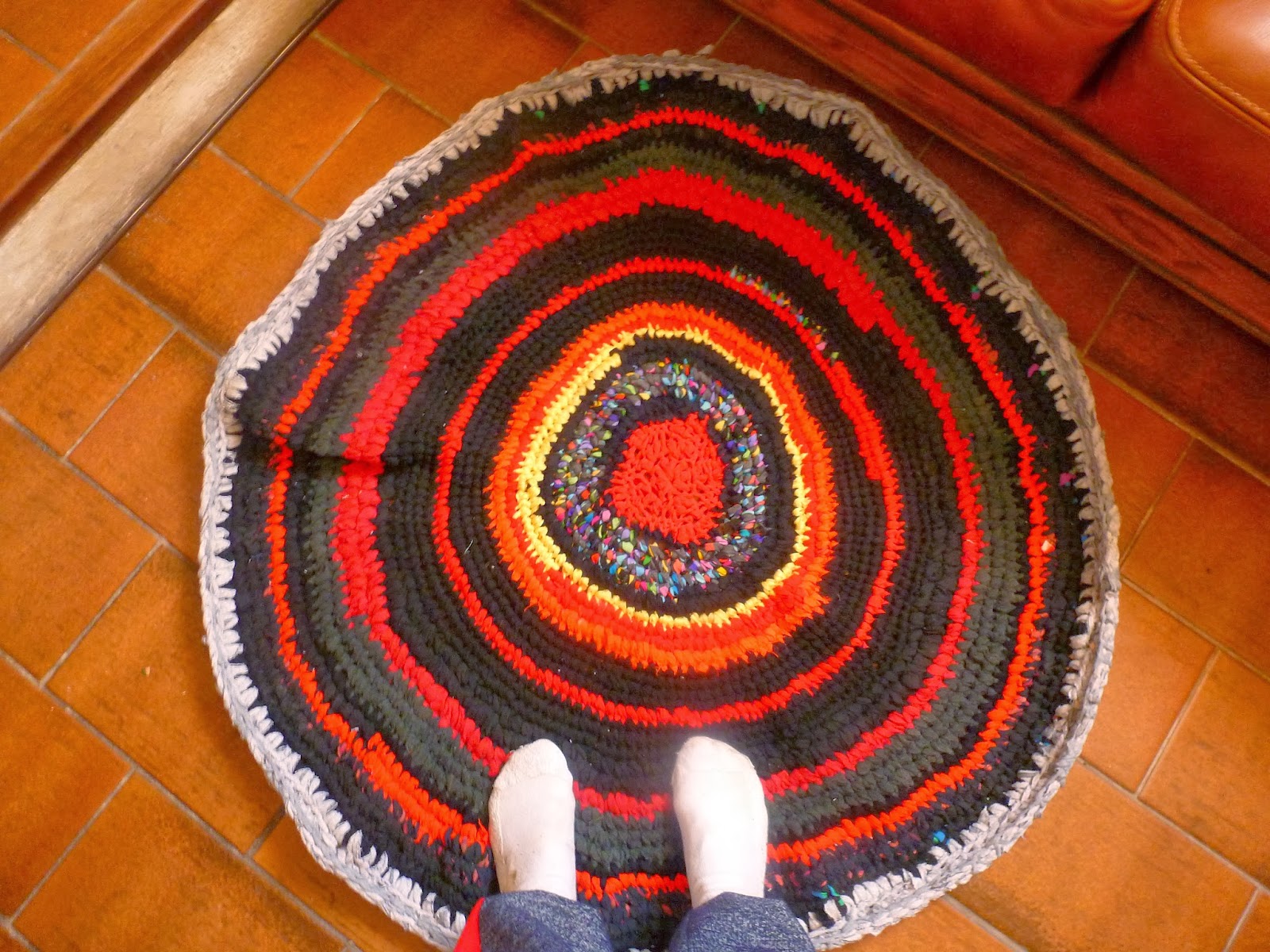 D'abord ce grand tapis circulaire, avec des contrastes de rouge et noir ...